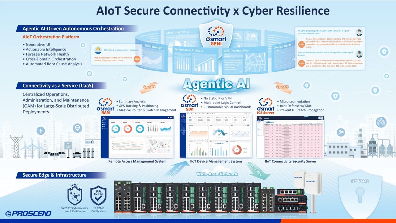 09 Apr, 2026AI與工業物聯網(IIoT)已高度連結著大規模關鍵基礎設施的營運環境,資安威脅正從單點攻擊演變為橫向擴散與跨域滲透。昇頻(PROSCEND)長期深耕智慧城市、交通運輸、能源管理與工業自動化等應用場域,致力於提升工業物聯網資安邊緣韌性解決方案,以「AIoT Edge Resilience」為主軸,於5/5-5/7 CYBERSEC 2026 臺灣資安大會亮相,位於臺北南港展覽二館 4F AIoT & Hardware Security Zone專區AH14,全面展示新一代邊緣資安防護與智慧聯網治理解方,強化企業面對分散式網路環境的防禦能力與營運韌性,實現全域可視、全程可管、全時維運的智慧治理。